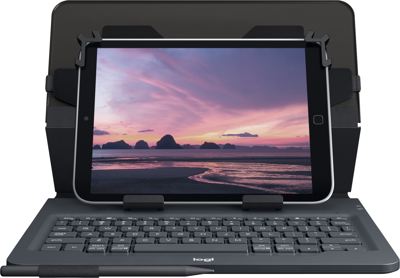 Skriv lige så behageligt på din 9–10-tommer tablet som på en bærbar computer. Universal Folio låser tabletten fast i den perfekte skrivevinkel og står stabilt, uanset om den holdes på skrivebordet eller i skødet. Beskyt din tablet mod stød og stænk ved almindelig brug. Universal Folio er nem at tage i brug og bruger en pålidelig Bluetooth® 3.0-forbindelse. Tastaturets dvaletilstand sparer på batteriet, der holder i to år. De separate funktions- og genvejstaster fungerer på iOS-, Android™- eller Windows®-operativsystemer, hvilket gør Universal Folio til et uundværligt værktøj for alle tablet-entusiaster.