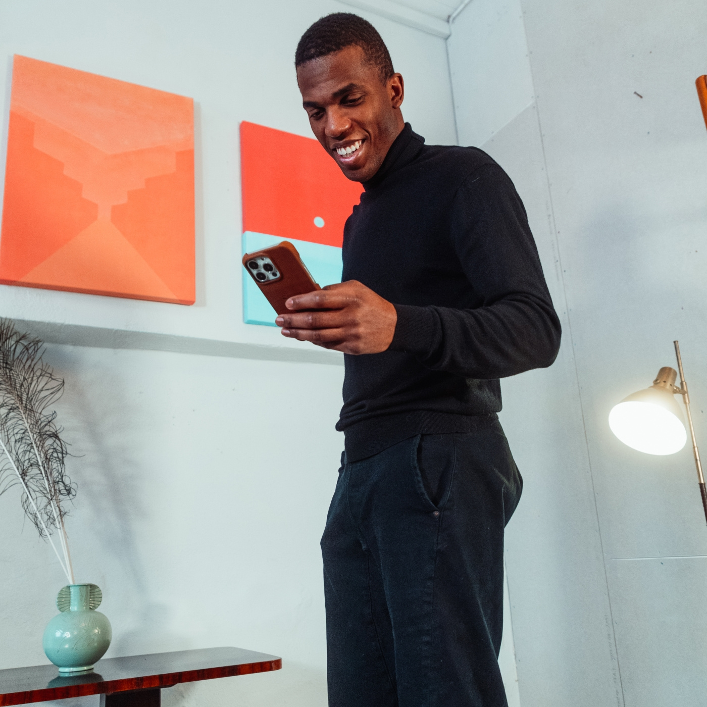 Læderet på denne stilfulde smartphone-skal er håndlavet af 100 % blødt, velduftende ægte læder.