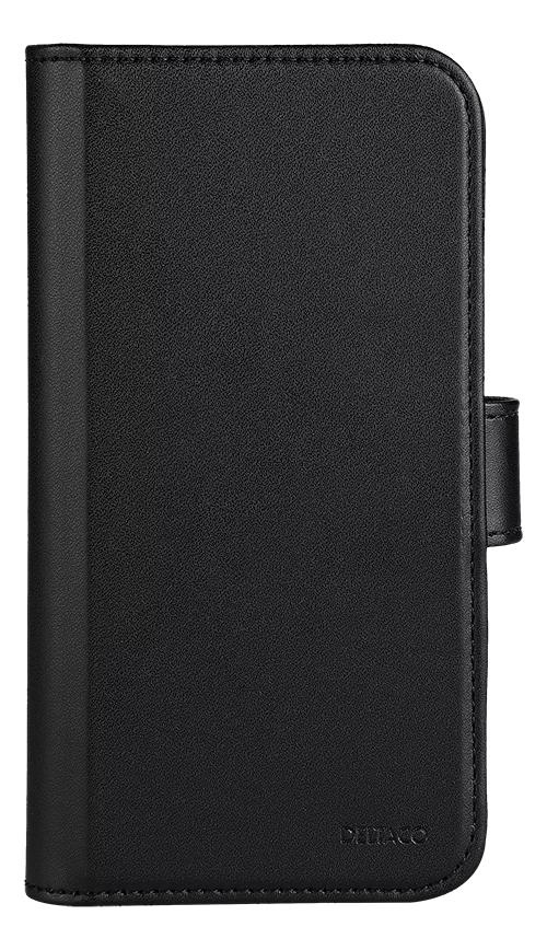 Wallet case in high-quality vegan leather with a removable magnetic cover. The wallet case has 3 credit card slots and a pocket for money or other. The locking flap on the case uses magnetic closure. Inside the case you will find a magnetic cover for your phone, it can be removed from the case and attached to other magnetic surfaces. The back of the shell has a rubberized surface.