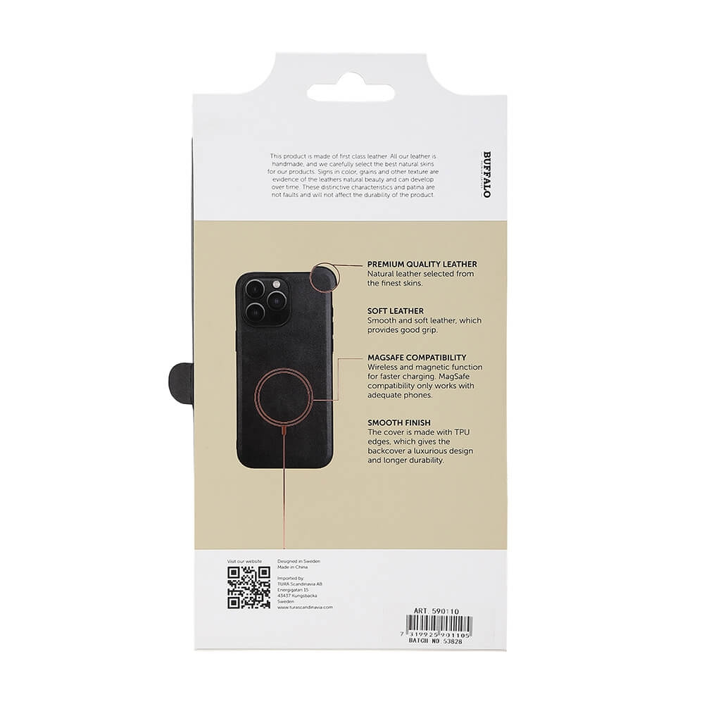 BUFFALO mobilcover er lavet af Aniline First Layer kvalitetslæder. Det har glatte og bløde gummierede kanter, som giver et fast greb.