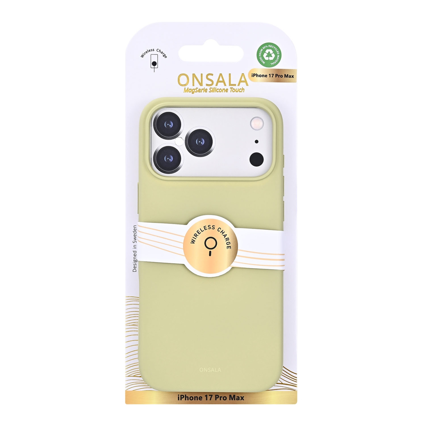 Mobilcoveret kommer i et stilrent svensk design og er lavet af genbrugsmateriale. Coveret har en hverdagsagtig og stilfuld farve, der nemt kan matches til ethvert look og stil. Det har en mat, glat og blød overflade med Onsalas logo diskret præget.