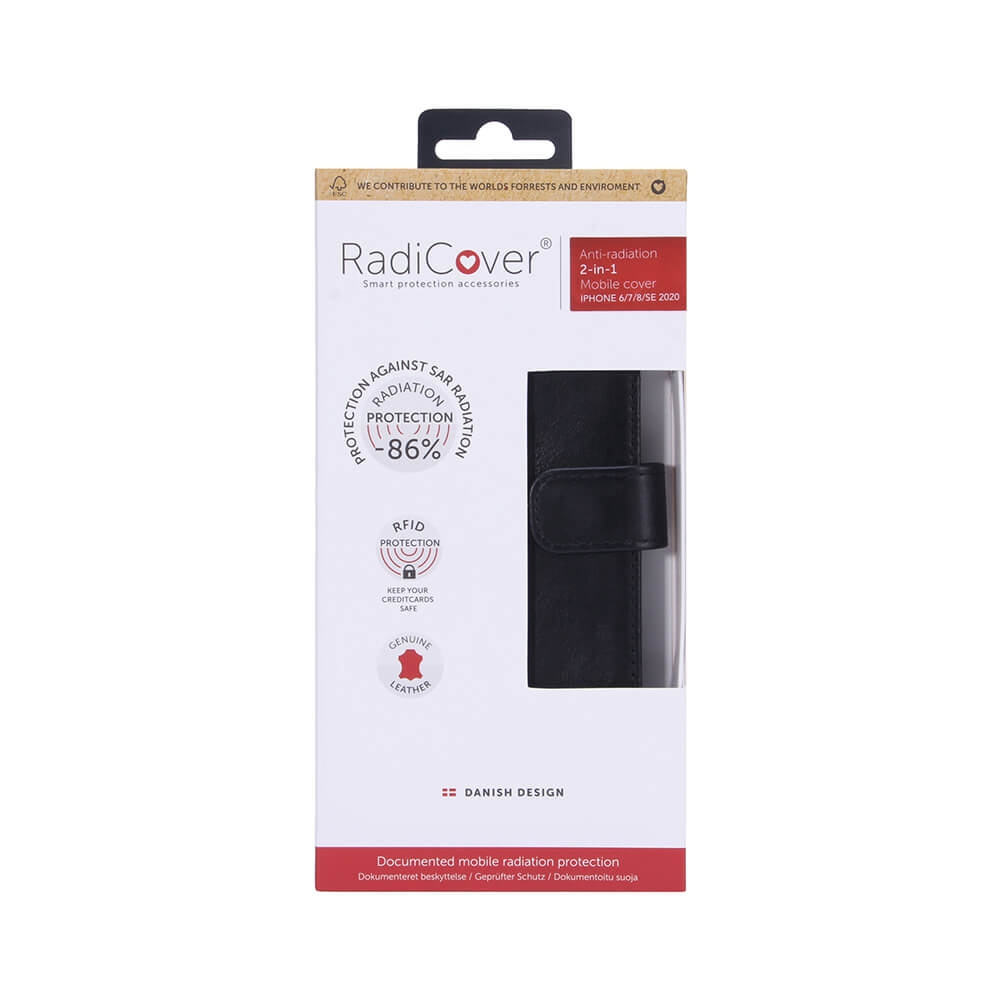 Radicover Strålingsbeskyttende Wallet Læder iPhone 6/7/8/SE2020/22 2in1 Magnetcover Sort