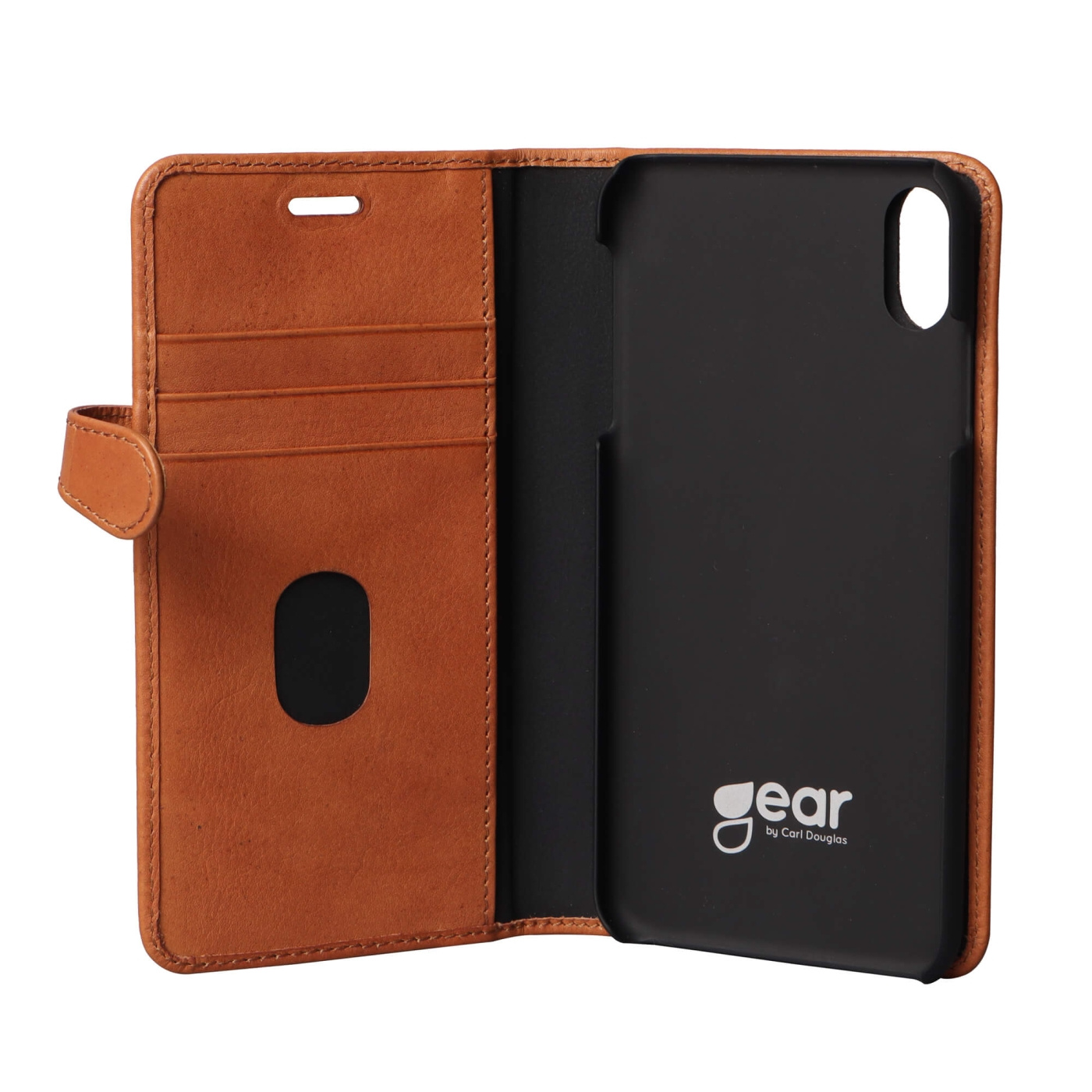 GEAR BUFFALO wallet af Anilin First Layer-kvalitet bøffellæder. Læderet er håndlavet i Indien, og produktet er designet i Sverige. Den har tre kort lommer og en seddel lomme. En magnetisk lås holder tegnebogen lukket. Der er hul til højttaleren for samtale med tasken lukket. Der er et hul til fingeren for at gøre det lettere at tage kreditkortene ud. Din smartphone er beskyttet i en magnetisk cover der også kan tages ud af tegnebogen. På bagsiden af tegnebogen findes samme eksklusive bøffellæder.