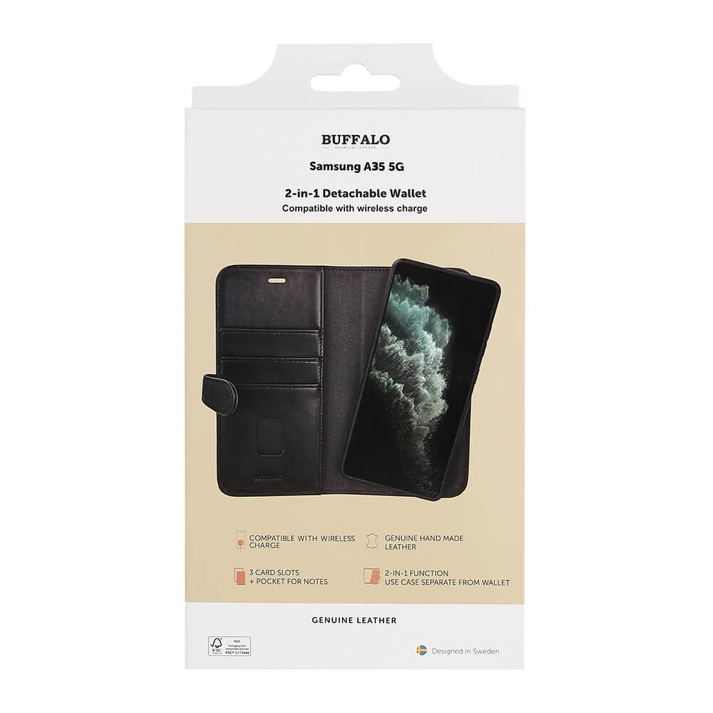 Buffalo Wallet Læder 2-i-1 Sort - Samsung A35 5G