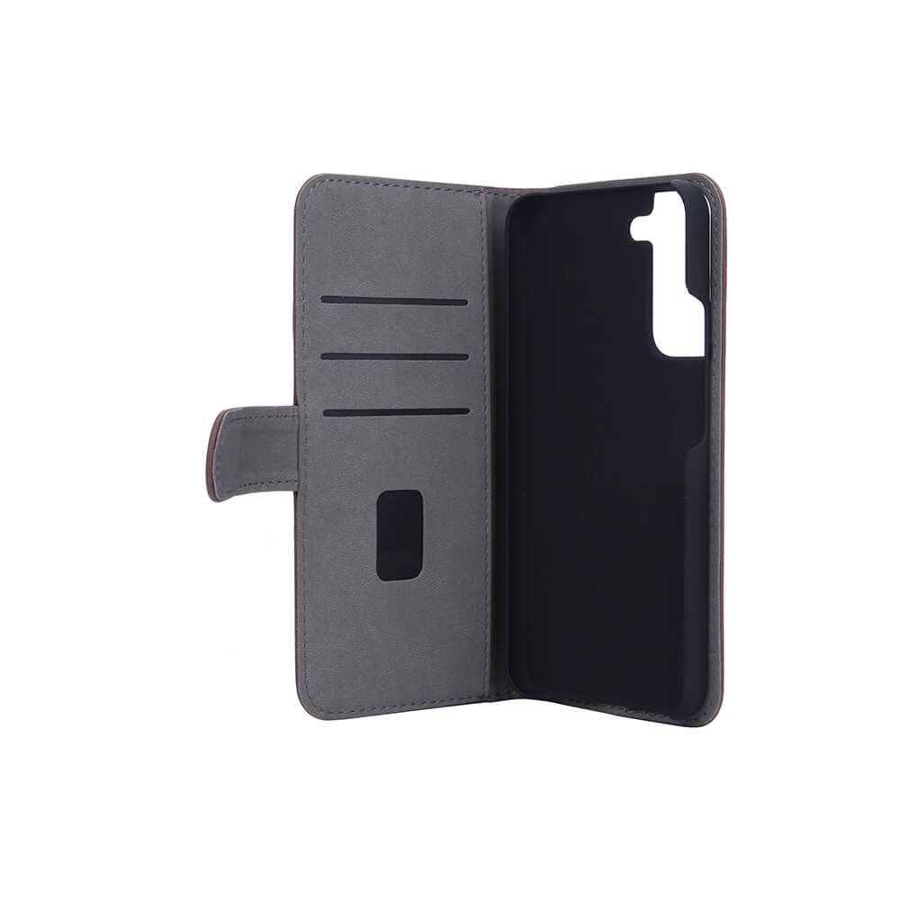Smart, Praktisk & Beskyttende Mobiltaske i Brun Nubuck Kunstlæder til Samsung S22+ - Rum til Kreditkort, Kørekort & Pengesedler, Med Standerfunktion