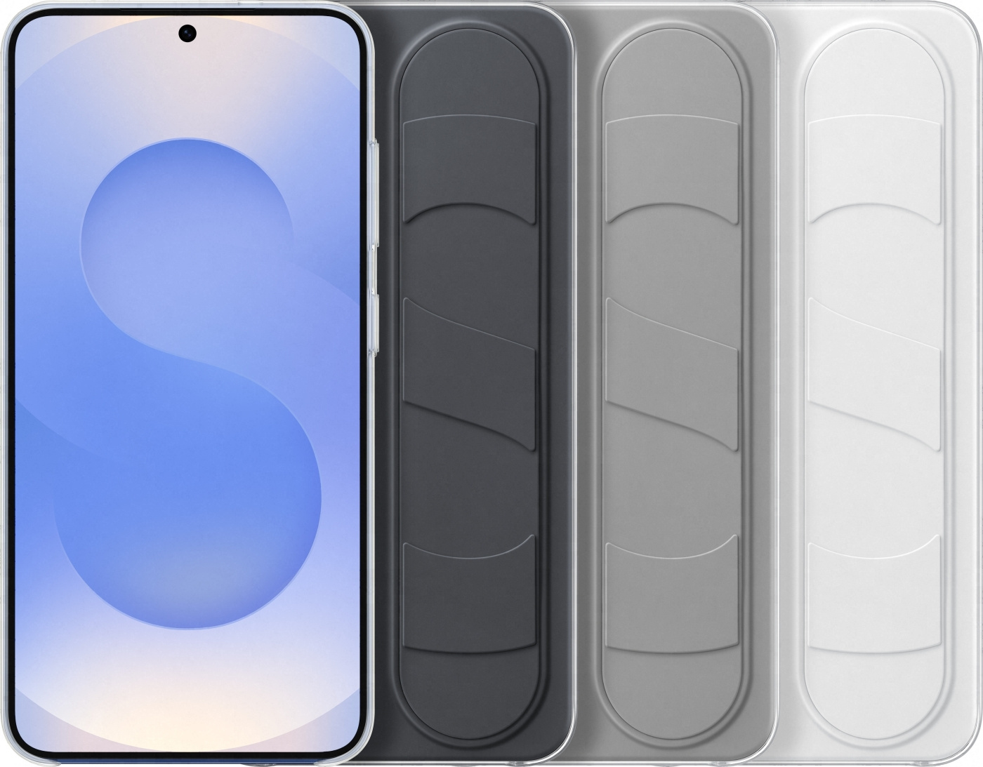 Den flotte og behagelige matte overflade giver et behageligt greb. Beskyttelsesetuiet, der fastgøres på bagsiden af enheden, beskytter din telefon mod stød og slag. Det giver beskyttelse, men bevarer samtidig telefonens slanke form. Etuiet har også en multifunktionel rem. Med den kan du nemt stille telefonen på bordet, mens du ser din yndlingsserie eller en film. Remmen fungerer også som en praktisk holder til din hånd, når du tager billeder eller scroller gennem sociale medier.