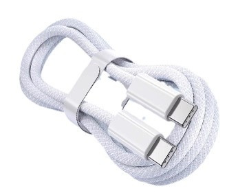 Flettet USB-C-kabel - 2 m - Hvid - iPhone 15-kompatibel - Nylon - PD60W