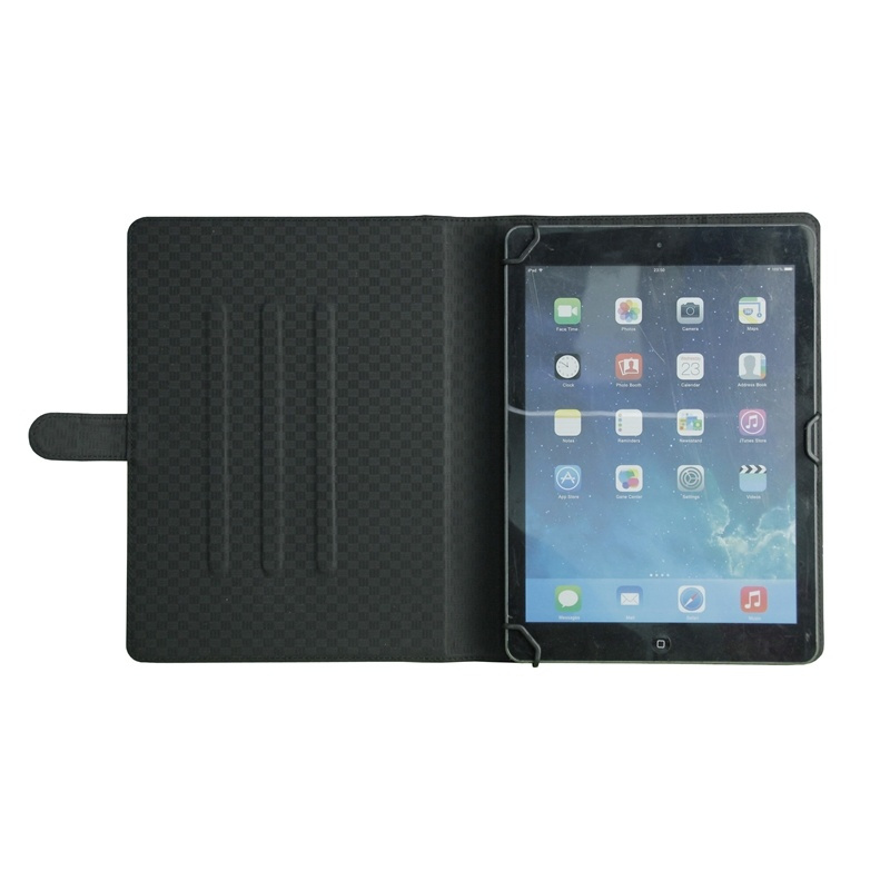 Slim beskyttende cover til tablets. Med stander funktion til flere forskellige synsvinkler. Coveret er lavet af syntetisk læder og lukkes med magnetlås. På bagsiden er der to foldbare faner for enkel anvendelse af kameraet på forskellige typer af tablets