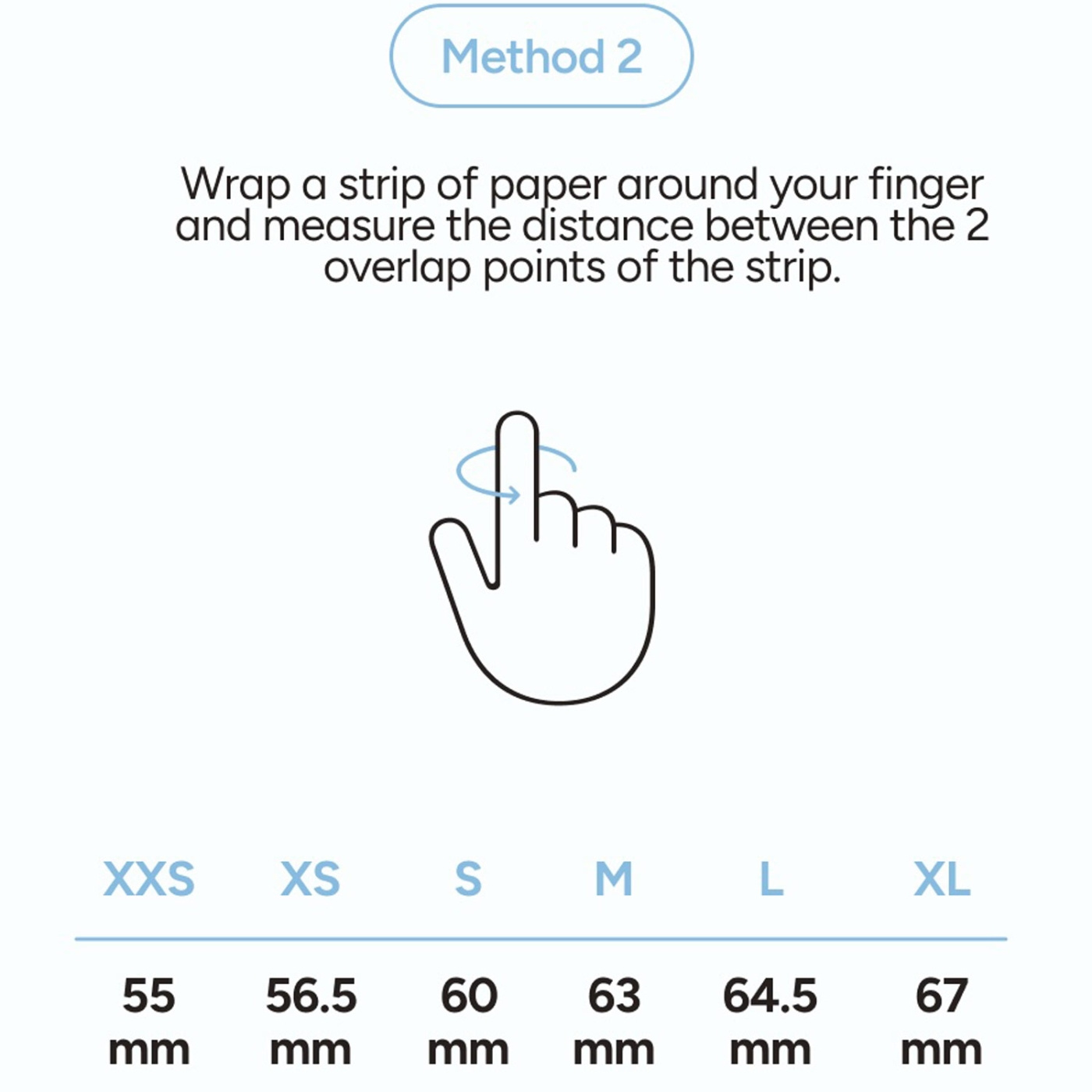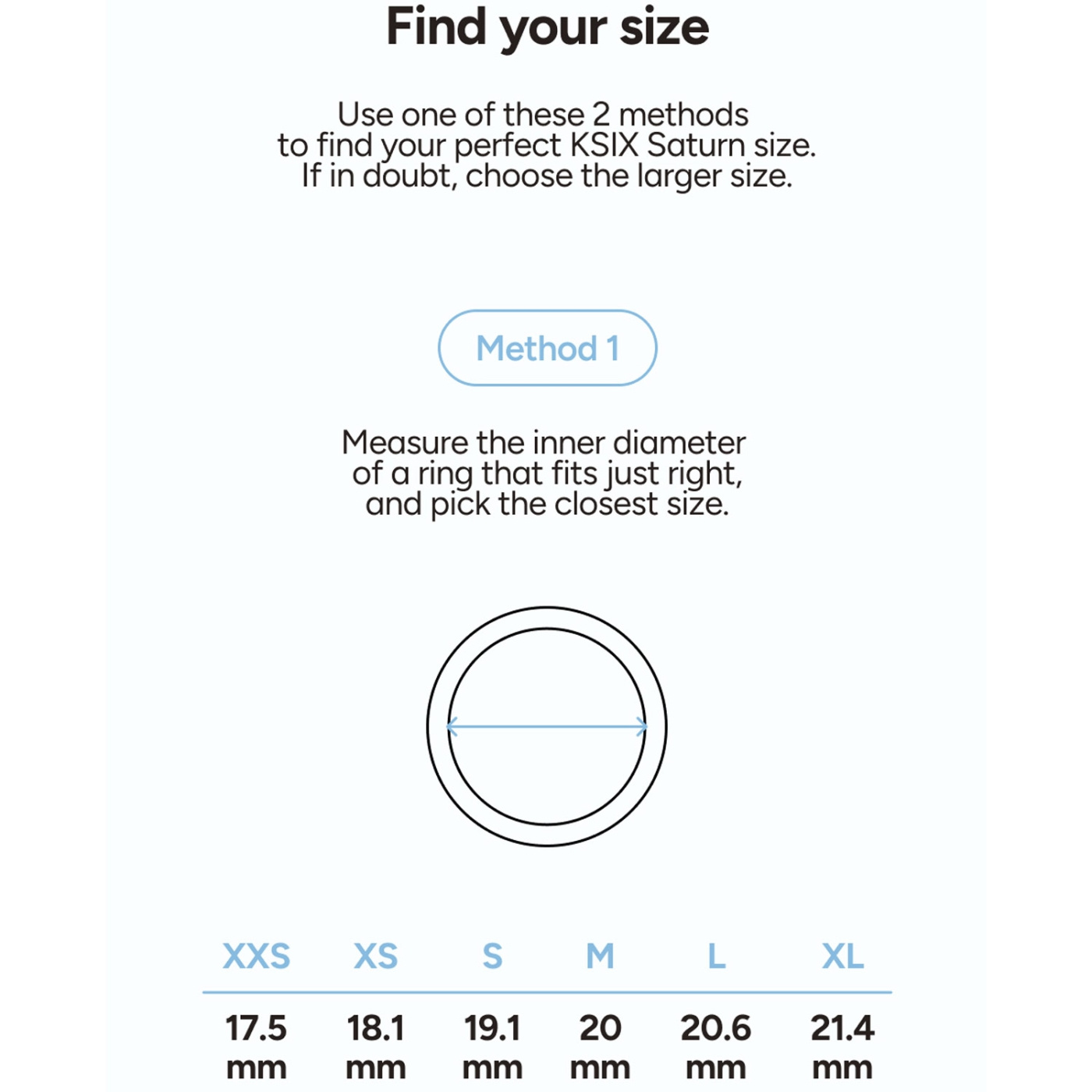 Storlekar: XS (18,1 mm), S (19,1 mm), M (20 mm), L (20,6 mm), XL (21,4 mm)