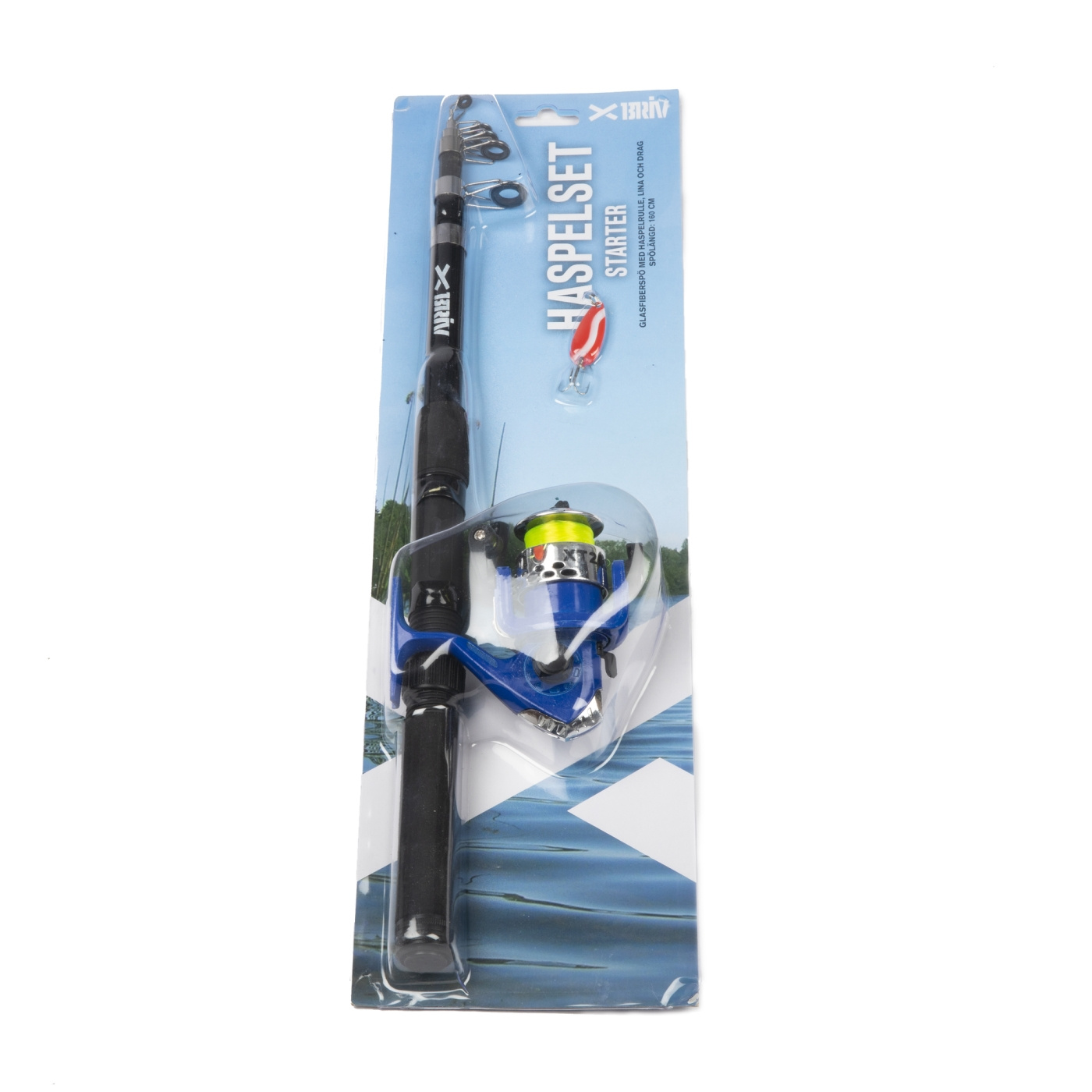 Teleskopspö med haspelrulle, lina och drag. Bakbromsad haspelrulle med fyra kullager. Spöt är tillverkat i glasfiber och har en totallängd på 210 cm I setet ingår tre stycken drag, mjukwobbler, skeddrag samt spinnare. På förpackningen medföljer monteringsanvisning samt tips och råd kring fisket.