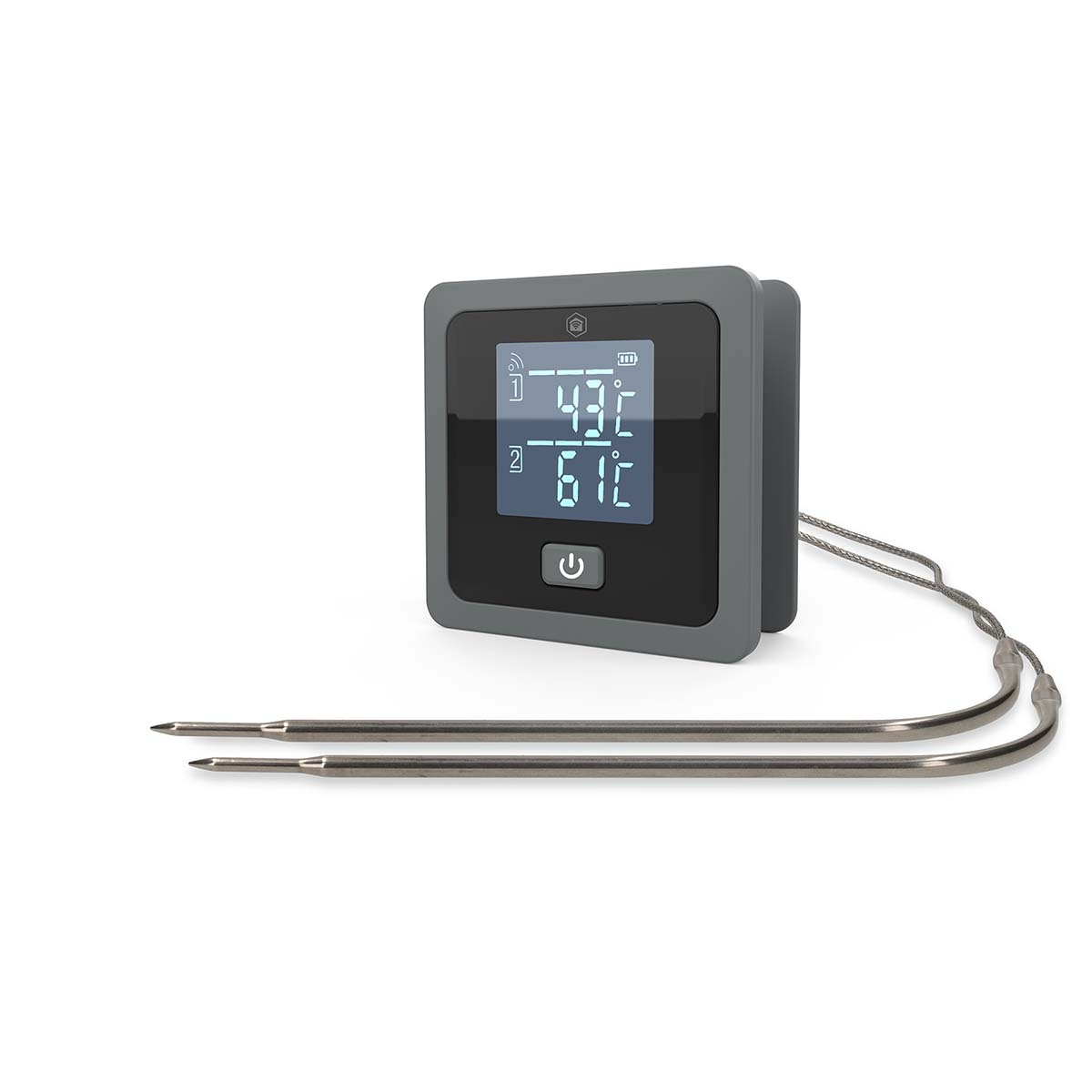 Termometeret er udstyret med to højkvalitetssonder og giver dig mulighed for at overvåge temperaturen på to forskellige retter på samme tid eller spore både dit kød og ovnens eller grillens temperatur på samme tid. Den medfølgende sondeklemme gør det nemt at måle omgivelsestemperaturen i din grill, rygeovn eller ovn, hvilket ikke kun sikrer perfekt kød, men også fuld kontrol over dit madlavningsmiljø. Hver sonde kan indstilles individuelt i Nedis SmartLife-appen, hvilket giver dig fuld kontrol og fleksibilitet. Når den valgte temperatur er nået, udsender termometeret ikke kun et klart lydsignal, men sender også en push-meddelelse direkte til din smartphone, så du aldrig går glip af det perfekte tilberedningspunkt.