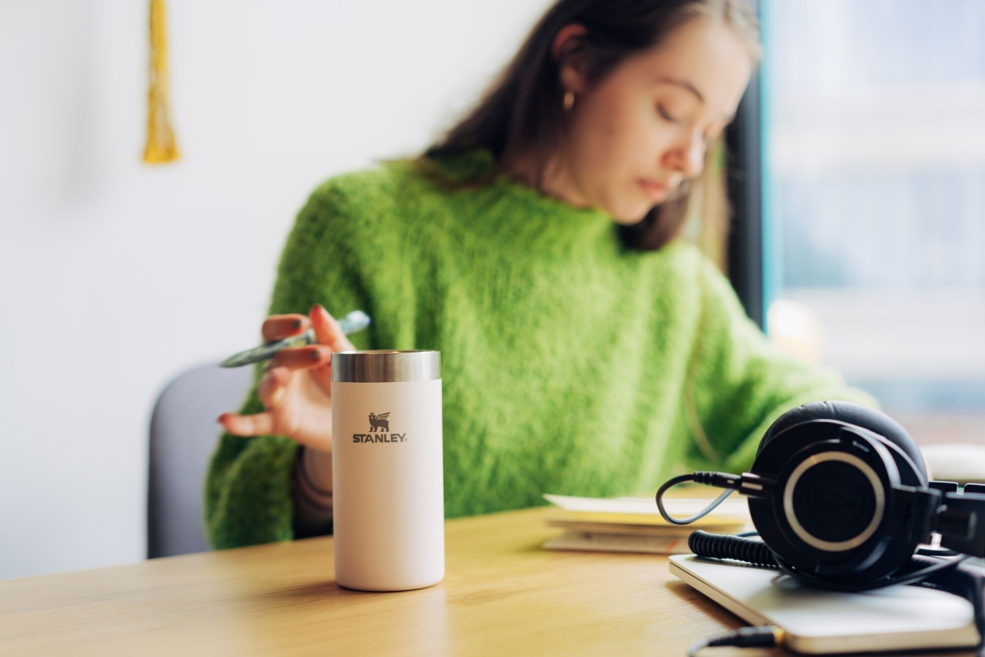 The Stanley AeroLight Transit thermal mug is made of durable steel, but is light as a feather. This elegant and simply styled thermos is the perfect companion for the workplace and on the move. AeroLight is suitable for hot and cold drinks and is one third lighter than standard stainless steel thermos mugs of the same size! The secret is Stanley's AeroLight™ technology, which doesn't compromise on durability or thermal performance. The thermos lid is easy to open and close, and it seals the mug so you can carry it anywhere without worry. AeroLight mugs have a sparkling finish.