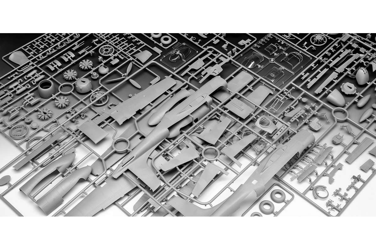 This 1:48 scale kit is the authentic model of the American "B-26-C" twin-engine bomber. The "B" stands for "bomber". The B-26C Invader was built by the Douglas Aircraft Company and took its maiden flight on 10 July, 1942. • Detailed surface structures • Cockpit imitation • Detailed chassis