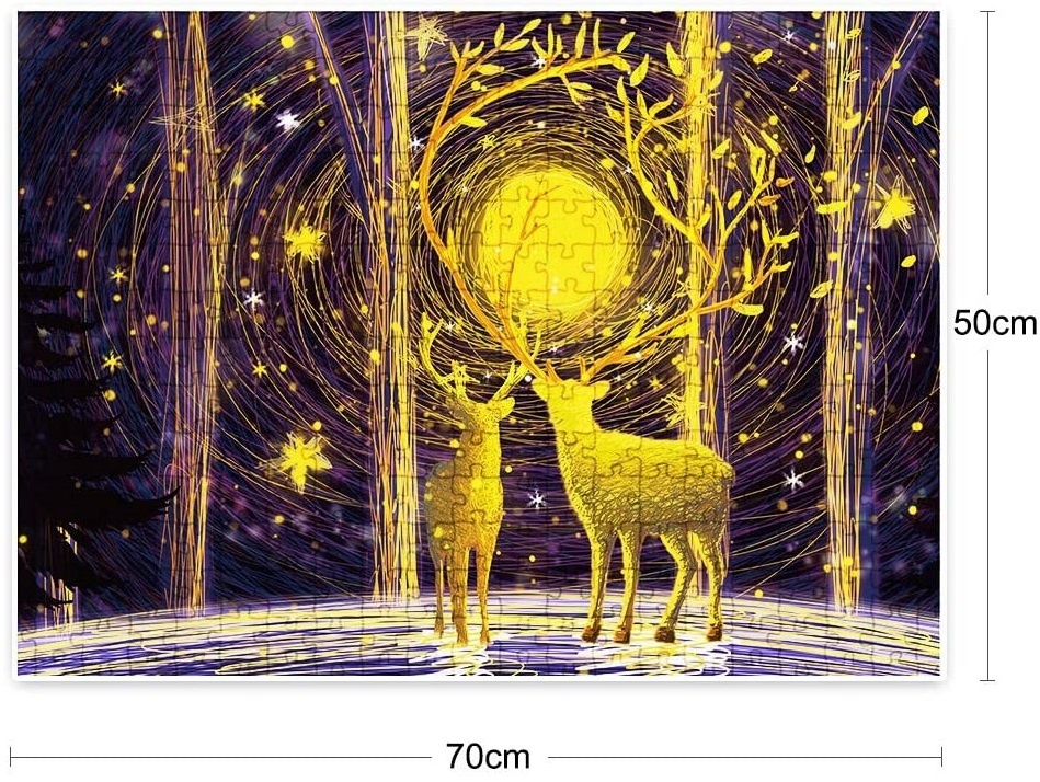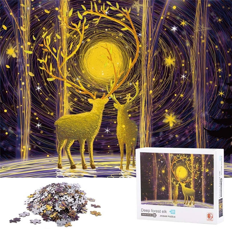 1000 bitars pussel med ett fint motiv hjortar i skogen. Utmanande och roligt pussel för hela familjen!