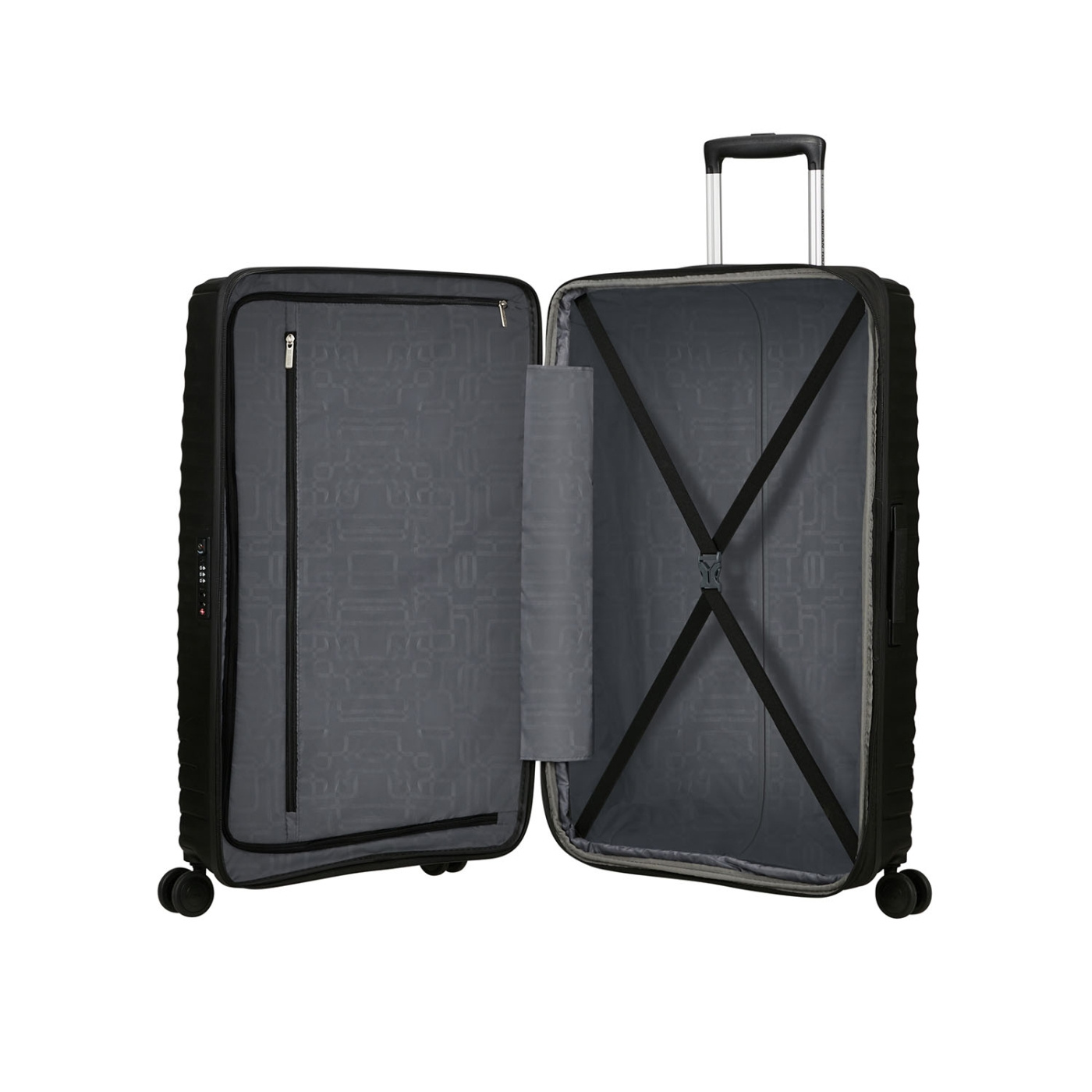 En rummelig og sikker kuffert fra American Tourister med udvidelig kapacitet og TSA-lås.