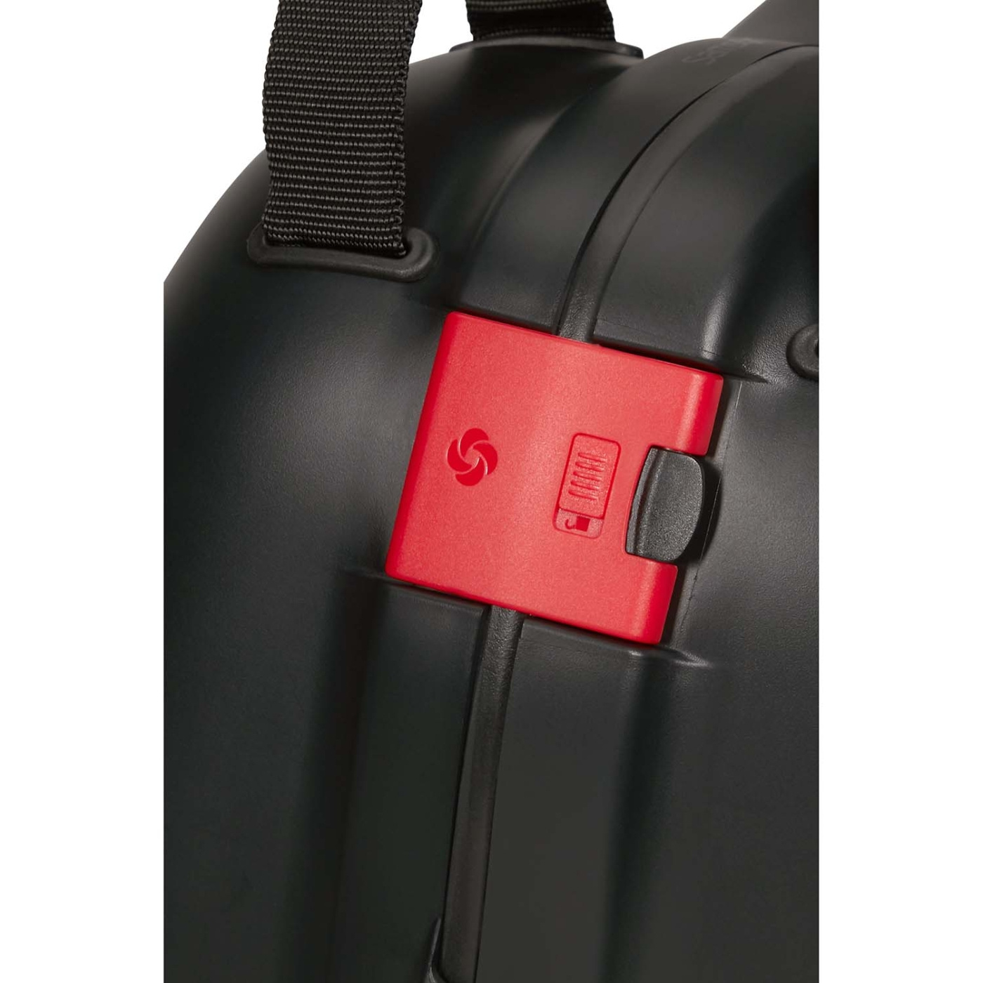 Övrigt: Integrerad ID-tagg, vävda handtag, och multifunktionellt bälte som kan användas som axelrem eller fästas vid incheckning